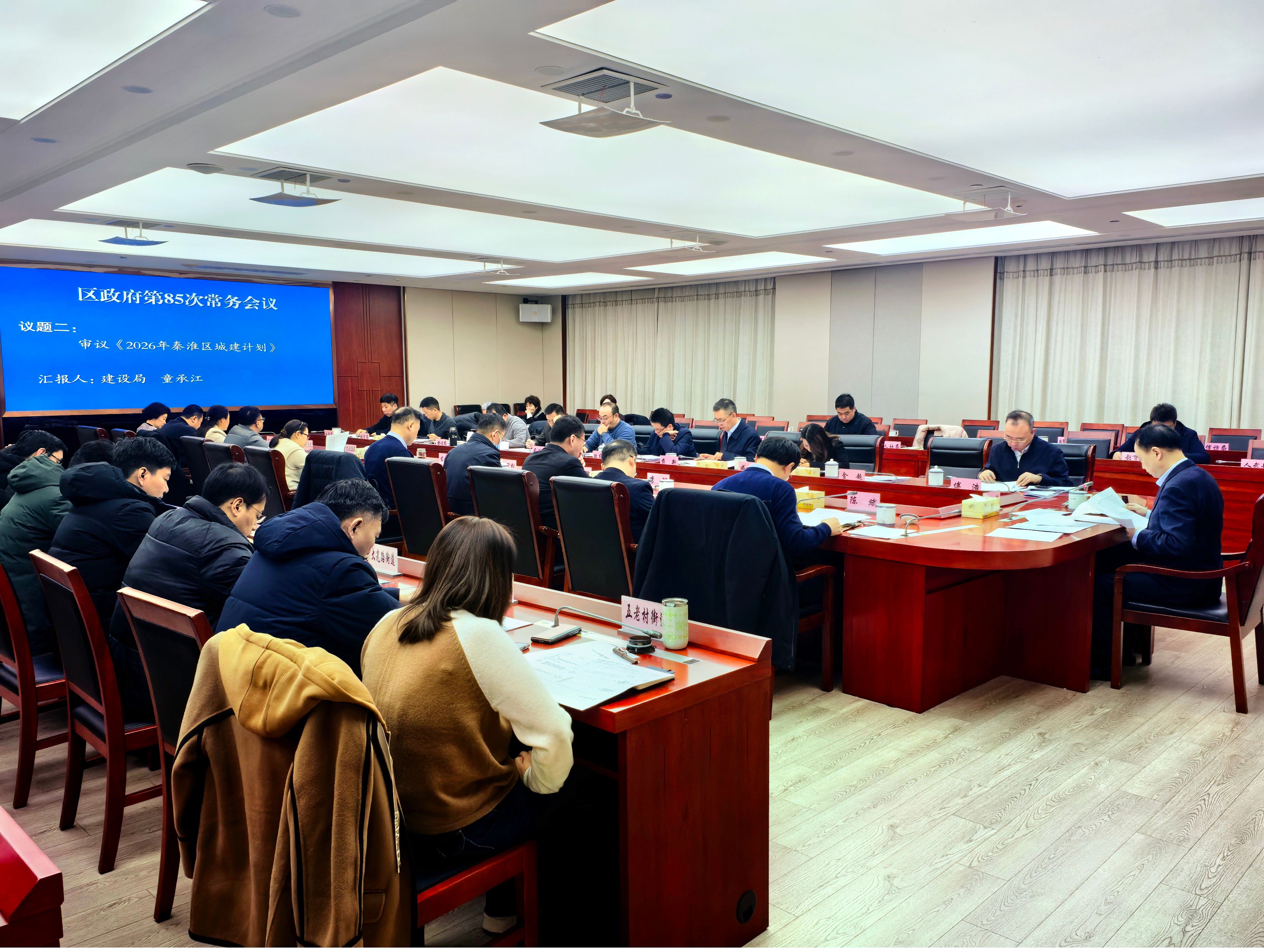 1月28日上午,区政府召开第85次常务会议,区长凌向前同志主持会议。会议深入学习贯彻习近平总书记在省部级主要领导干部学习贯彻党的二十届四中全会精神专题研讨班开班式上的重要讲话精神,学习贯彻重要文章《在中央城市工作会议上的讲话》精神、中国共产党第二十届中央纪律检查委员会第五次全体会议精神。会议审议《2026 年秦淮区城建计划》等文件,研究中央和省、市审计反馈问题整改工作。会议还研究了其他事项。