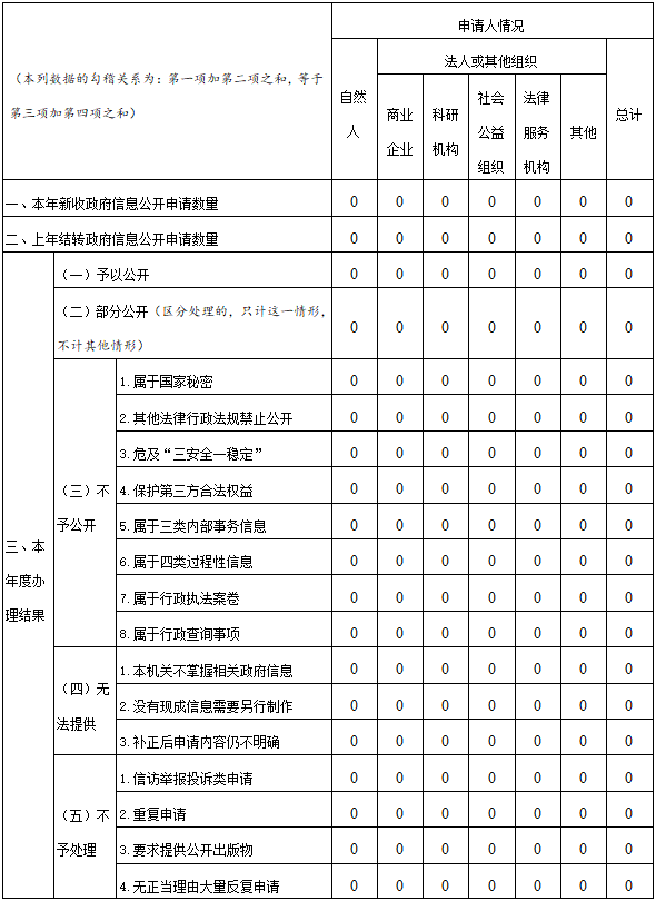 三、收到和处理政府信息公开申请情况