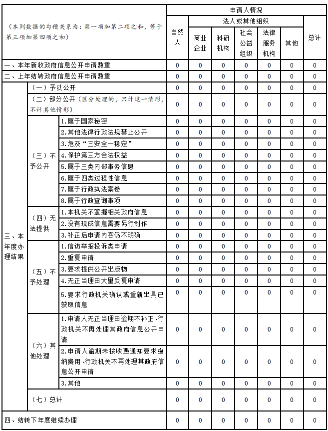 三、收到和处理政府信息公开申请情况