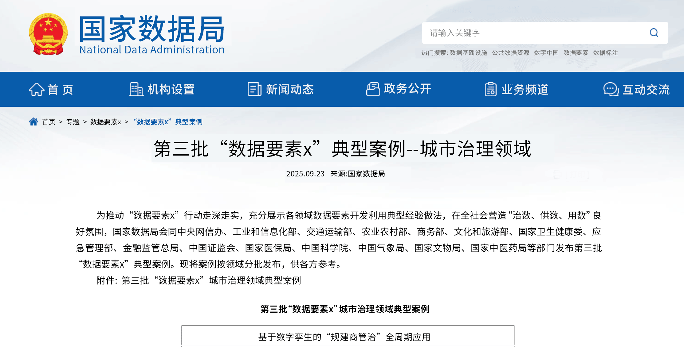 数据要素作为关键生产要素对城市治理现代化的驱动作用愈发凸显。为充分释放数据要素乘数效应,国家数据局等17部门,明确提出“数据要素×城市治理”重点行动,要求推动城市人、地、事、物等多维度数据融通,支撑城市规划、建设、管理等场景的精细化决策。