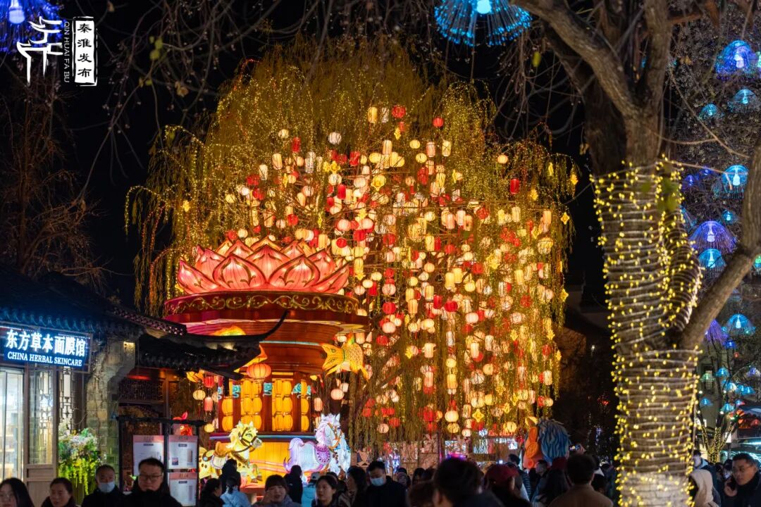 秦淮河的水,载着六朝的桨声灯影缓缓流淌。岁末年初,一树树灯彩在夫子庙的飞檐下亮起,暖黄的光晕漫过文德桥,晕染着老城南层层叠叠的青瓦与街巷。